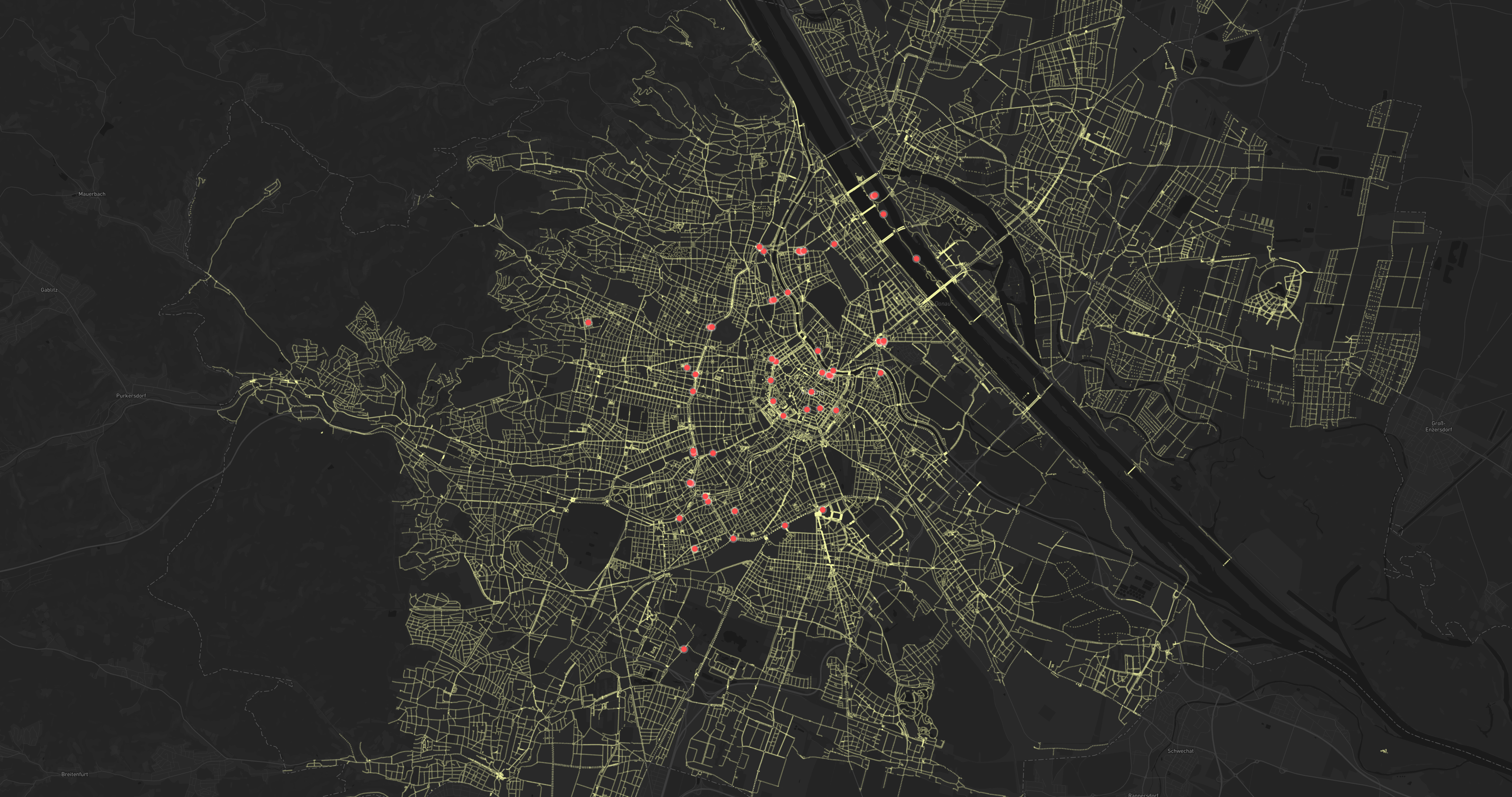 In der FURCHE-Umfrage markierten die Teilnehmenden ihre Angsträume in Wien.